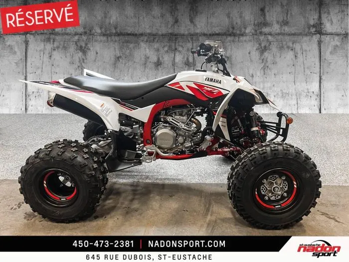 Yamaha YFZ450R SE 70TH Anniversary 2026 : la performance légendaire à l’état pur La Yamaha YFZ450R SE 70TH Anniversary 2026 est bien plus qu’un VTT sport haute performance : c’est une invitation à la performance ultime, à la liberté totale et à l’adrénaline sans compromis. Édition spéciale célébrant 70 ans d’excellence Yamaha, ce modèle s’adresse aux pilotes à la recherche d’un parfait équilibre entre puissance, maniabilité et technologie, faisant de la YFZ450R une référence incontestée dans la catégorie VTT sport compétition. Elle est offerte ici dans une livrée exclusive blanc perle et rouge compétition, élégante, audacieuse et résolument racée, soulignée par des graphiques 70e anniversaire qui rendent hommage à l’héritage de la marque. Équipée d’un moteur monocylindre 4 temps de 450 cm³ à injection électronique, la YFZ450R SE délivre une accélération explosive, un couple généreux et une traction exceptionnelle, idéale pour le pilotage sportif, les sentiers techniques et la conduite hors route de haut niveau. Son châssis en aluminium léger et rigide, combiné à une suspension KYB haute performance entièrement ajustable et à une ergonomie de pilotage inspirée de la compétition, assure une stabilité remarquable, une précision de conduite chirurgicale et un contrôle total, même dans les conditions les plus exigeantes. Que vous rouliez sur les sentiers du Québec, les terrains techniques des Laurentides ou les pistes fermées, ce modèle garantit une expérience de conduite engageante, précise et sécuritaire. Côté design et équipement, la YFZ450R SE 70TH Anniversary 2026 se distingue par un style sportif exclusif et une technologie pensée pour la performance pure et le contrôle : Suspension KYB piggyback entièrement ajustable Embrayage assisté et antiblocage (slipper clutch) Injection électronique Yamaha (EFI) Freins à disque haute performance avant et arrière Composantes premium spécifiques à l’édition 70e anniversaire Yamaha signe ici un VTT sport performant, fiable et exclusif, taillé pour les pilotes passionnés et la compétition hors route. Chez Nadon Sport à Saint-Eustache, nous proposons la Yamaha YFZ450R SE 70TH Anniversary 2026 neuve à $, avec plusieurs options de financement flexibles, incluant la 1re, 2e et 3e chance au crédit. Venez la découvrir en concession et comprendre pourquoi elle est considérée comme l’un des meilleurs VTT sport du marché. Chez Nadon Sport, notre équipe accompagne les passionnés de sports motorisés du Québec depuis 1961 dans le choix de véhicules adaptés à leur style de conduite et à leur utilisation. Situé à Saint-Eustache, notre concessionnaire offre un service personnalisé, des conseils d’experts et un accompagnement complet avant et après l’achat.